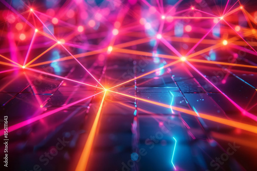 Naklejka premium Luminous neon lines forming intricate shapes with glowing effects,