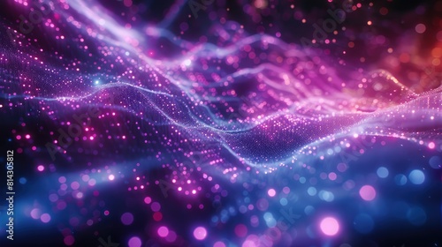 Fototapeta premium Luminous neon particle structure. Digital cyberspace futuristic science...