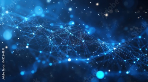 Fototapeta premium Luminous network connecting points, forming intricate blue pathways and...