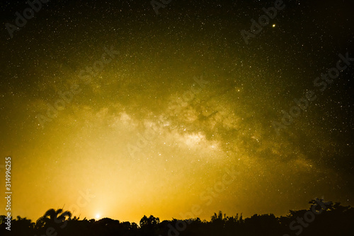 Fototapeta premium Luminous night with moon light, Vast sky at night landscape with milky way and various starry over forest