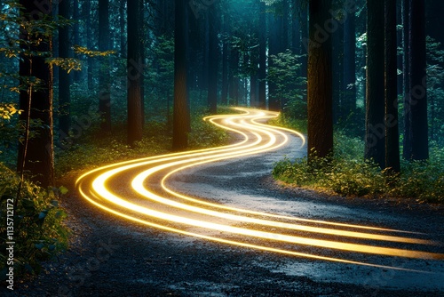 © Somsak, Obraz premium Luminous Path Through the Forest.