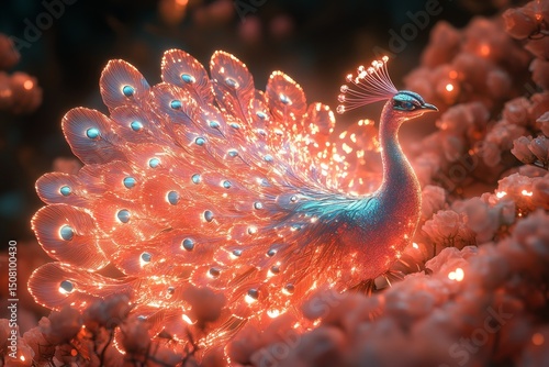 Obraz premium Luminous peacock amidst blossoms, fantasy art