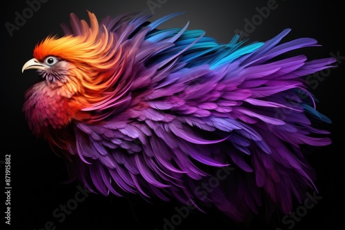 © JONATAS, Obraz premium Luminous Renaissance Minimalist Phoenix in Neon Art, generative IA