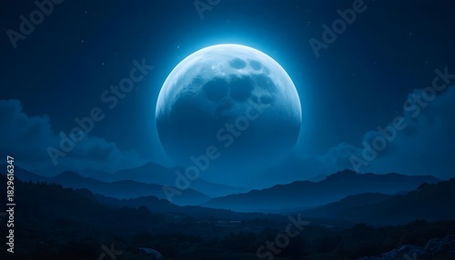 © Thebro , Fototapeta premium Luminous style Blue Moon Above Peaceful Night Hills