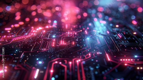 © Rianah, Obraz premium Luminous Tech Grids Neon Lines and Circuits