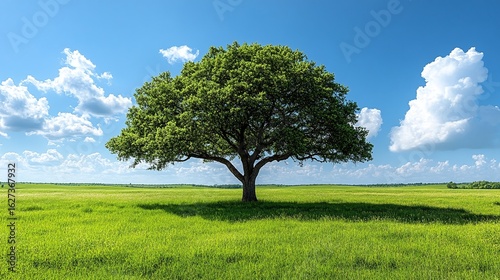 © Fatra Aziz, Obraz premium Luminous tree in a vast field under a clear sky.