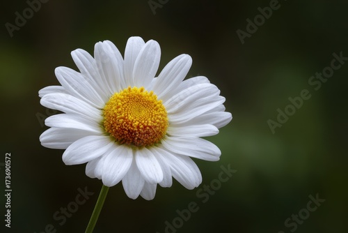 © datronis, Fototapeta premium Luminous White Daisy in Solitude Against a Soft, Dark, Moody Green Background.