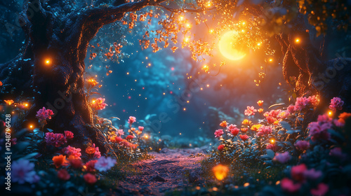 Obraz premium Luna iluminando flores