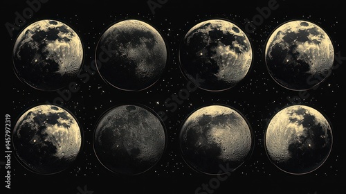 © luck, Obraz premium Lunar cycle visualization showcasing the different phases of the moon