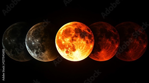 © Thaweechai, Obraz premium Lunar Eclipse Gradient Displaying Deep Fiery Red Glow in Space