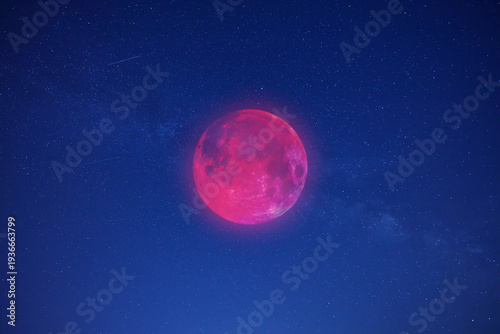 Fototapeta premium Lunar eclipse on a starry Milky Way background.
