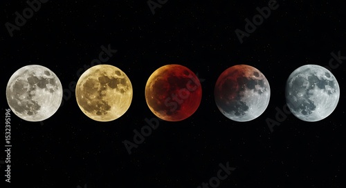© Artistic, Obraz premium Lunar Eclipse Phases A Celestial Dance of Light and Shadow