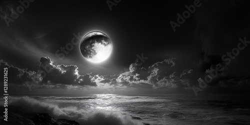 © Nikola, Fototapeta premium Lunar Eclipse Sun (B&W)