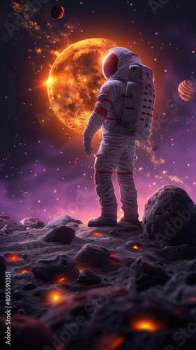 Obraz premium Lunar Exploration: Astronaut and Cosmic Beauty