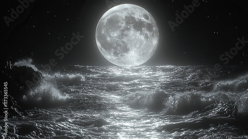 Fototapeta premium lunar landscape, moon surface, craters, moon rocks, barren, moon dust, desolate, otherworldly, celestial, moonlight, serene, vast, gray terrain, moon mountains, cosmic, moon valleys, moon plains, moon