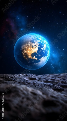 © Tamas, Obraz premium Lunar Landscape with Earth