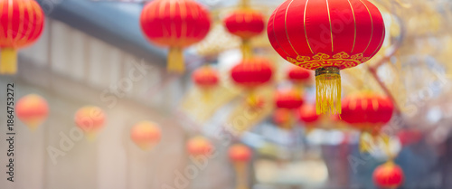 © toa555, Obraz premium Lunar new year lantern decorated in chinatown area.