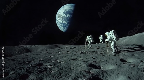 © lasalus, Obraz premium Lunar overview astronauts in space