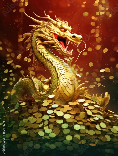 Obraz premium Lunar year 2024 is year Of Dragon, symbol of growth, success, prosperity,...