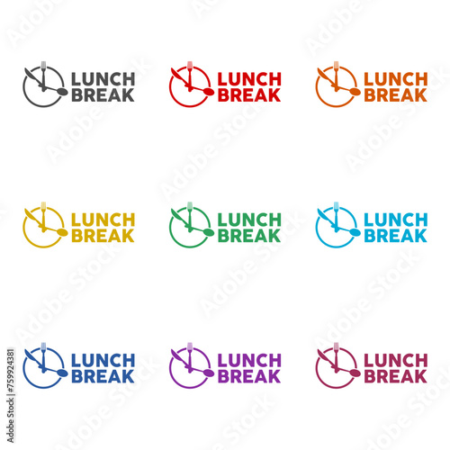 © sljubisa, Naklejka premium Lunch break icon isolated on white background. Set icons colorful