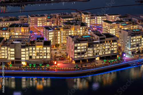 Fototapeta premium Lusail, Qatar - December 20, 2024: Aerial view of Lusail Marina with Gewan...
