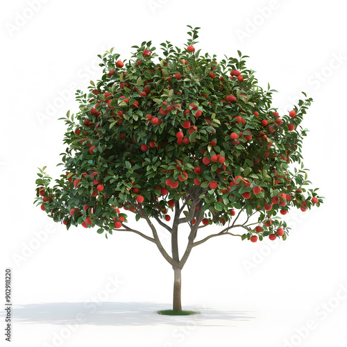 Naklejka premium Lush Apple Tree Full of Red Fruit on a Plain Background