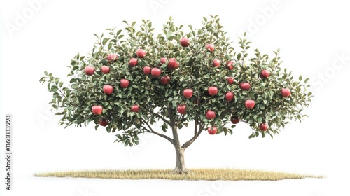 © bulegendut, Fototapeta premium Lush apple tree laden with ripe red apples, isolated on white.