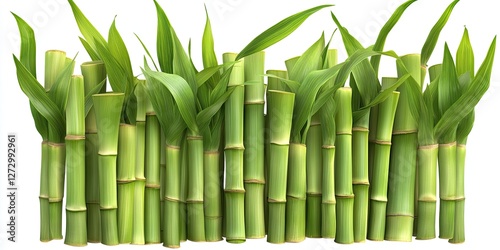 © afterfast, Fototapeta premium Lush Bamboo Fence Against White Background