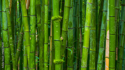 Fototapeta premium Lush Bamboo Forest A Green Paradise Close Up Shot with Vibrant Colors and Texture