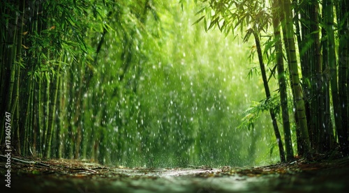 Obraz premium Lush bamboo forest in rain