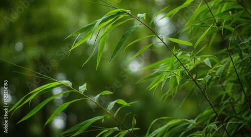 Obraz premium Lush Bamboo Leaves in Natural Green Forest Setting for Serenity
