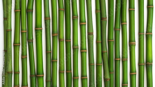 Fototapeta premium Lush bamboo stalks arranged vertically against a clean bright background