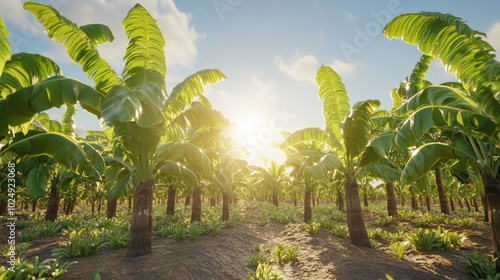 Fototapeta premium Lush Banana Plantation Under Bright Sky