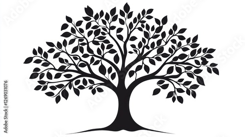 Fototapeta premium Lush black tree silhouette, isolated, nature, growth, background, design element