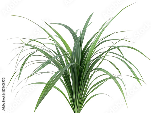 Fototapeta premium Lush bunch of slender green grass blades arching upwards against a stark white background.
