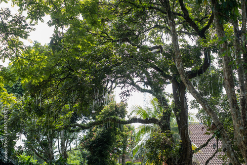 Obraz premium Lush Canopy of Tropical Trees, A Verdant Scene Featuring Dense F