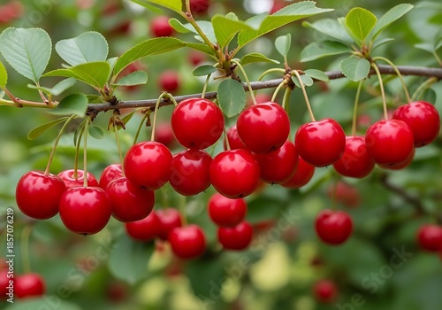 Obraz premium Lush cherry abundance, ripe red jewels hanging from branches