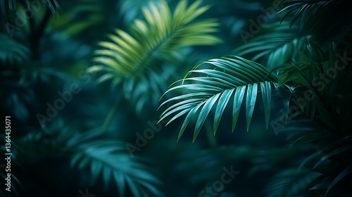 © Awwa, Fototapeta premium Lush Dark Green Tropical Palm Leaves