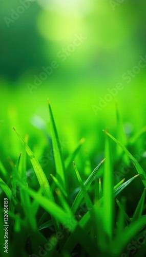 Fototapeta premium Lush, dew-kissed blades of emerald green grass , flora, rural, texture