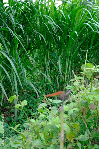 © Top, Fototapeta premium Lush Elephant Grass with Dewy Leaves in a Sunlit Field for Mockup Design