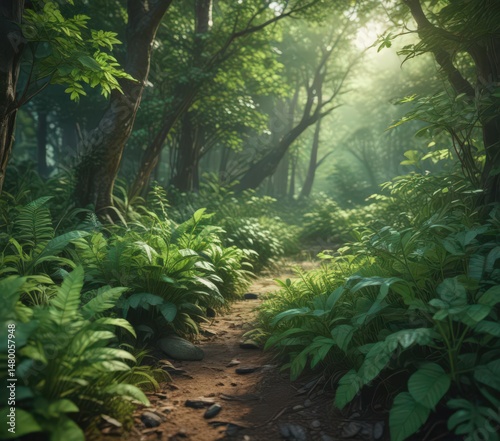 © Chaipod, Fototapeta premium Lush emerald undergrowth, vibrant green leaves , botany, abundant