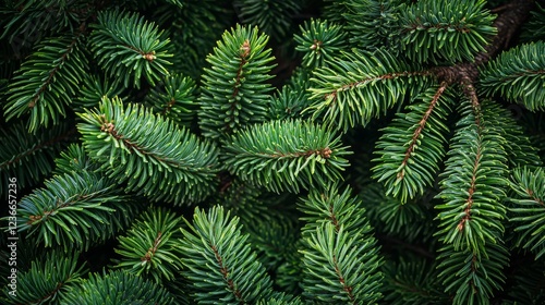 Obraz premium Lush Evergreen Fir Branches in Nature Texture Close-Up Forest Environment...