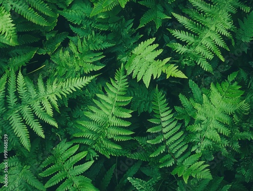 © Alexander Chaykin, Obraz premium Lush Ferns in a Forest Setting