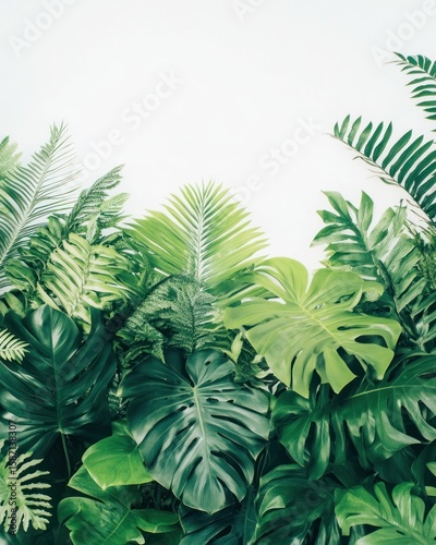 © Malikmagak, Fototapeta premium Lush foliage arrangement against a plain background.