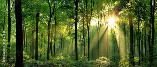 © Oscar, Fototapeta premium Lush forest bathed in golden sunlight