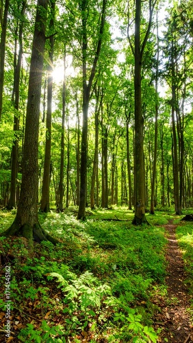 © Sylvani, Obraz premium Lush forest bathed in sunlight (1)