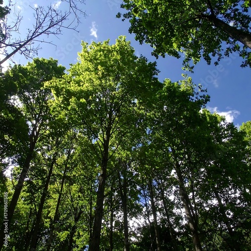 © Murai, Obraz premium Lush forest canopy, sunlight filtering through