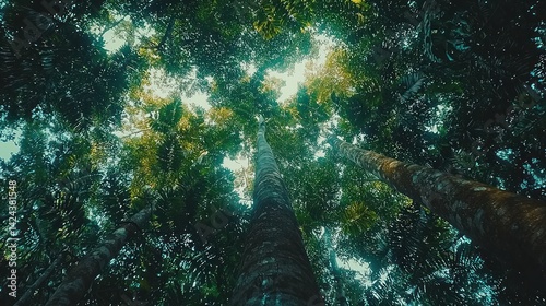Fototapeta premium Lush forest canopy, upward view