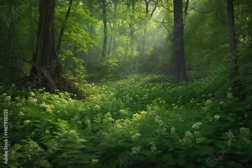 © Eka, Fototapeta premium Lush forest floor bathed in morning light