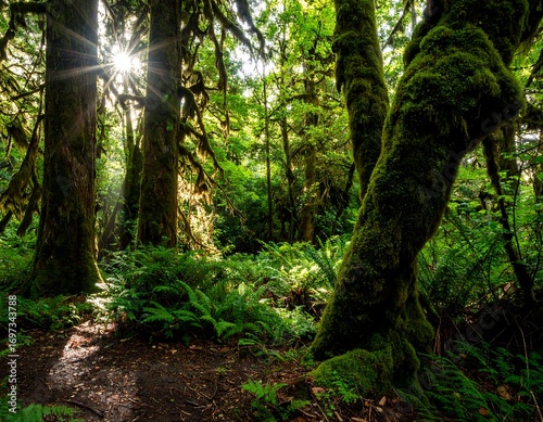 Fototapeta premium Lush forest floor bathed in sunlight (1)